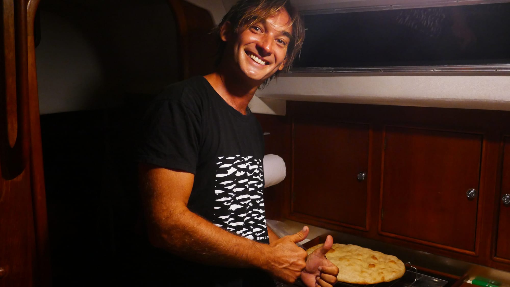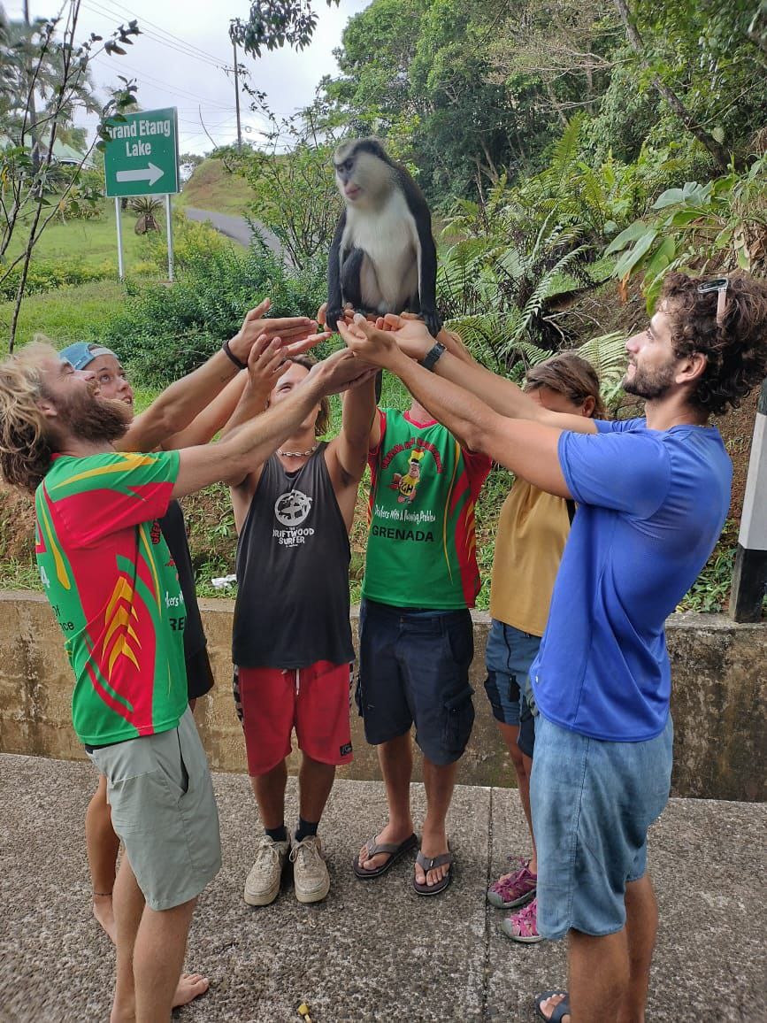 Alors qu'on discute et qu'on fait connaissance, on voit à fleur d'eau une tête brune dépassée. Une minute plus tard, Carlos, bateaux-stoppeur avec qui David voyage à Grenade, nous rejoint et bientôt, on partage du poisson en croquettes, pêché entre Carriacou et Ronde Island.