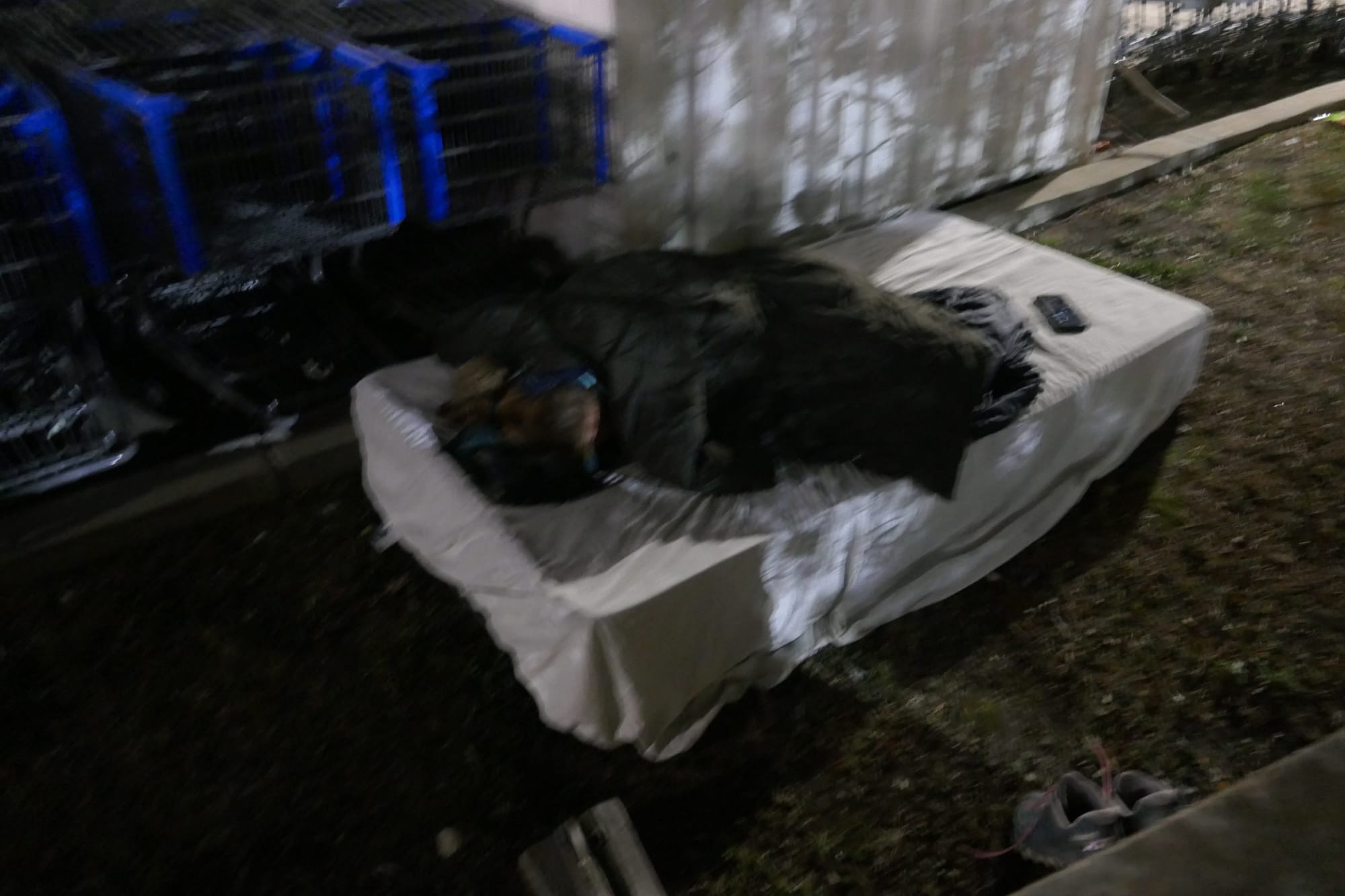 Vers 23h, la jeune femme nous dit gentiment avec son accent indien "we are closing, sorry", et on rassemble fissa nos affaires. Le froid gifle sans égard ce corps que j'avais réussi à reposer un peu. Retour à la réalité de la rue où il faut en permanence trouver "un autre endroit" parce qu'aucun n'est le nôtre. Les yeux me brûlent de fatigue. L'expérience et l'habitude me font dire que ça va passer, et malgré l'affaiblissement général, je reste concentré, notamment quand, en route vers un centre d'accueil de nuit qu'un local nous avait conseillé, on voit deux personnes titubant s'y diriger. La crise des opioïdes et la très haute capacité addictive du Fentanyl, drogue 100 fois plus puissante que la morphine qui a détruit des milliers de vies en Amérique du Nord depuis 3 décennies, me rendent sceptique, voire parano. Je propose à Clem qu'on fasse demi-tour, et qu'on rejoigne la station essence à la sortie de la ville. Une fois arrivés au "Petro-Canada", je demande à un employé s'il est possible de rester dans un couloir inutilisé, il me dit que oui et ajoute que pour nous, le café est gratuit.